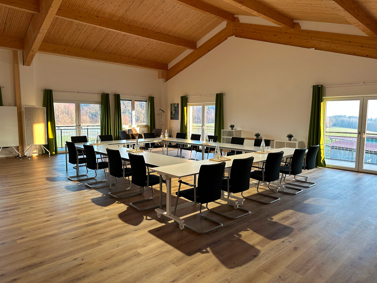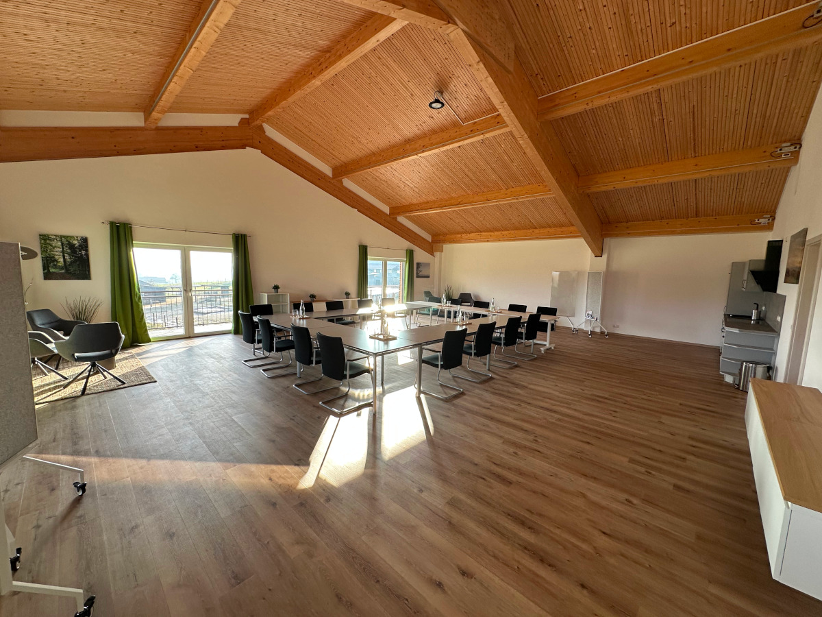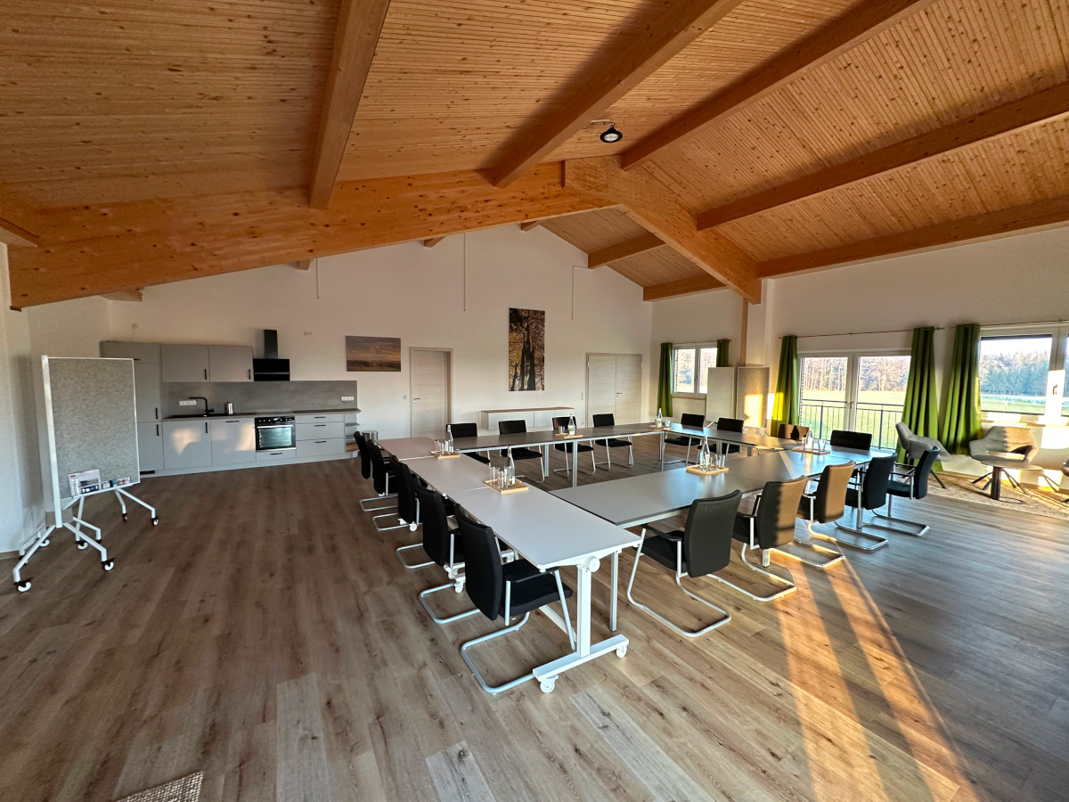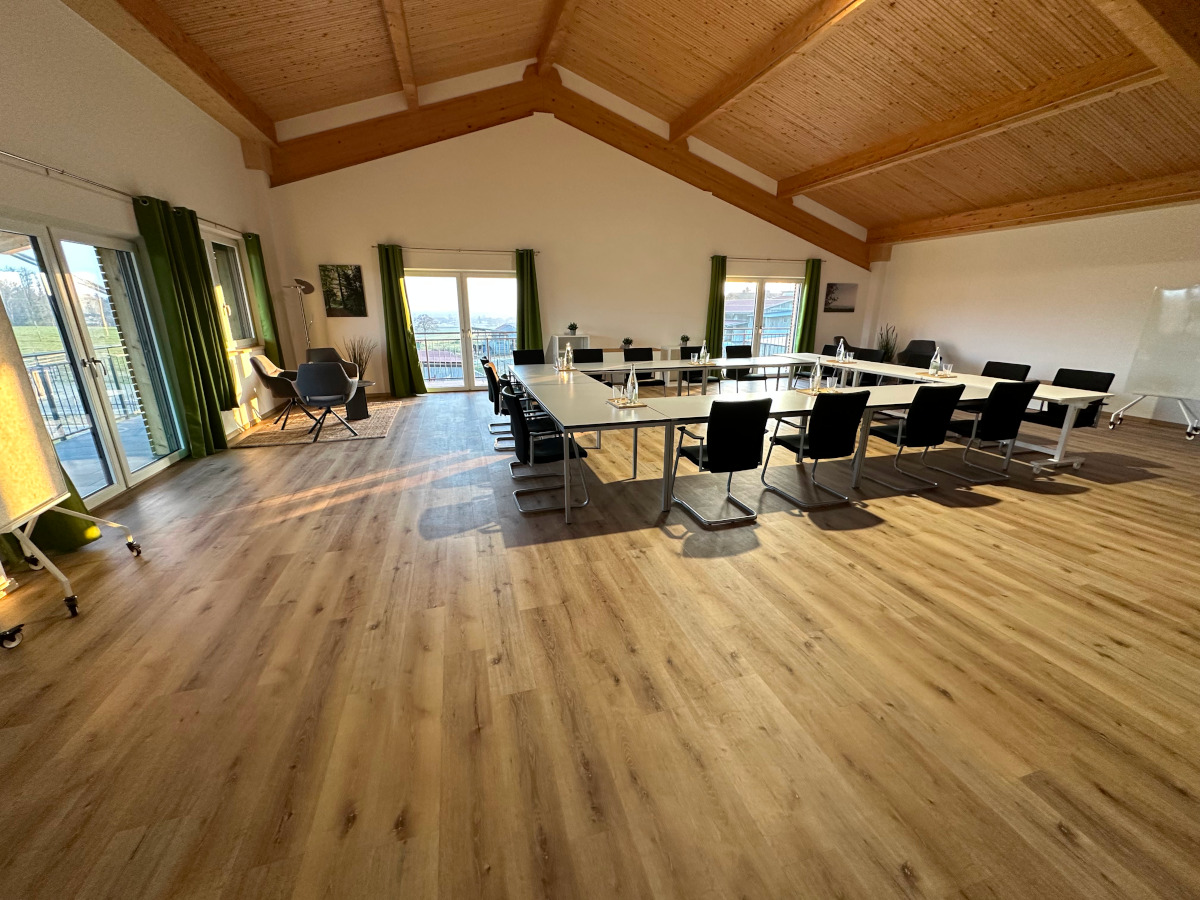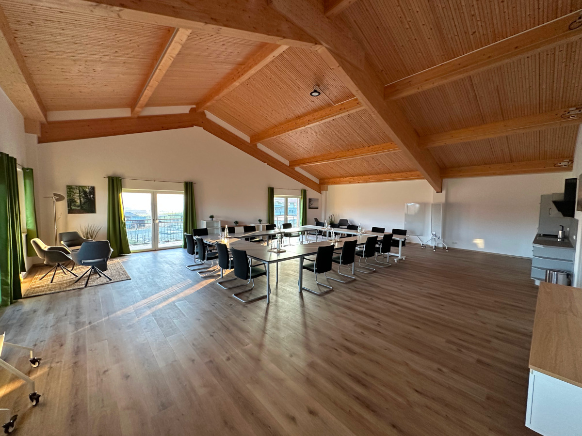Die ruhige, naturnahe Umgebung sowie die großzügigen Räumlichkeiten schaffen ideale Bedingungen für fokussiertes Arbeiten und kreatives Denken. Unser Seminarraum ist flexibel nutzbar und eignet sich hervorragend für Seminare, Workshops oder Fortbildungen – alles in einer entspannten und professionellen Atmosphäre.