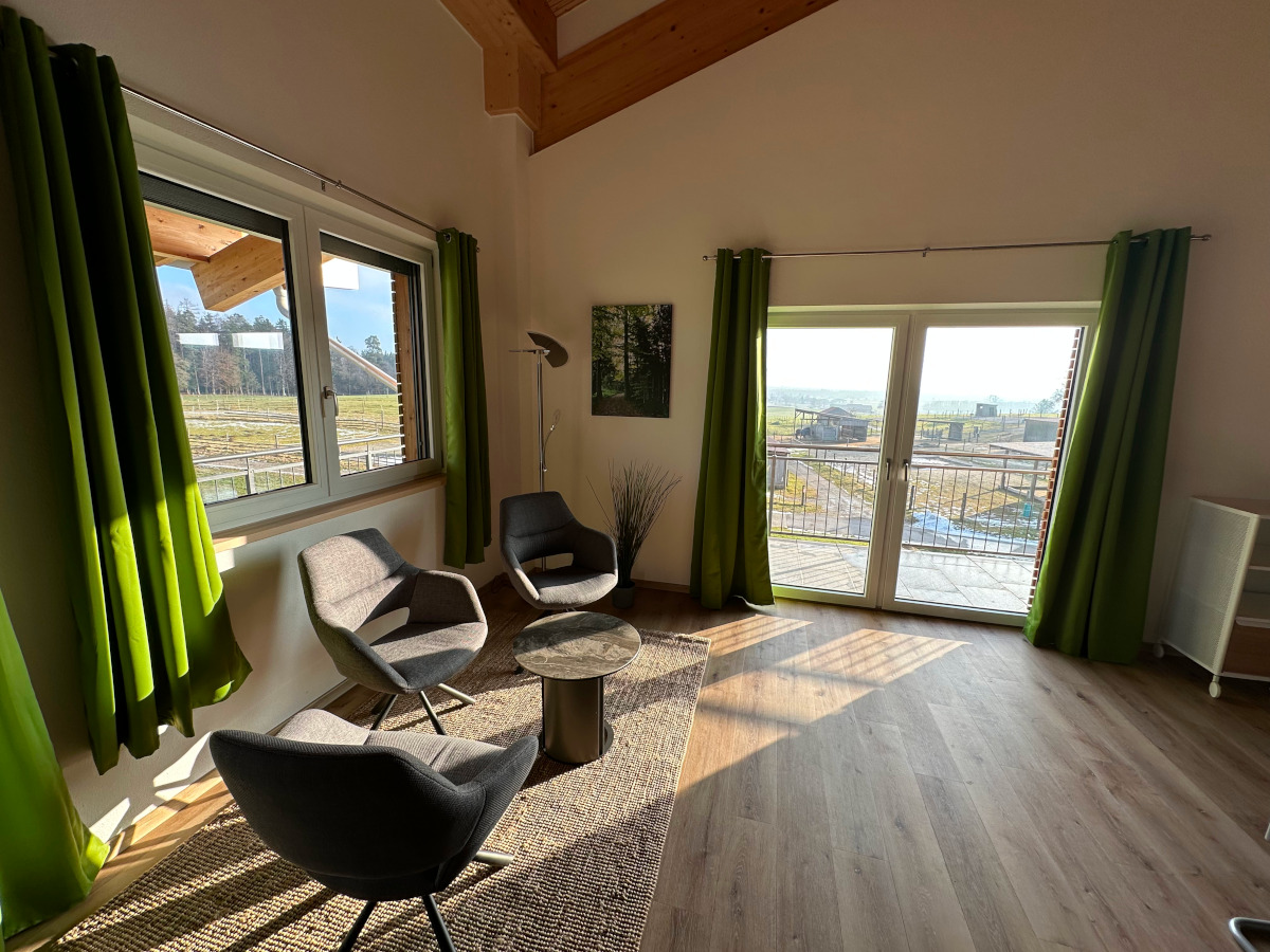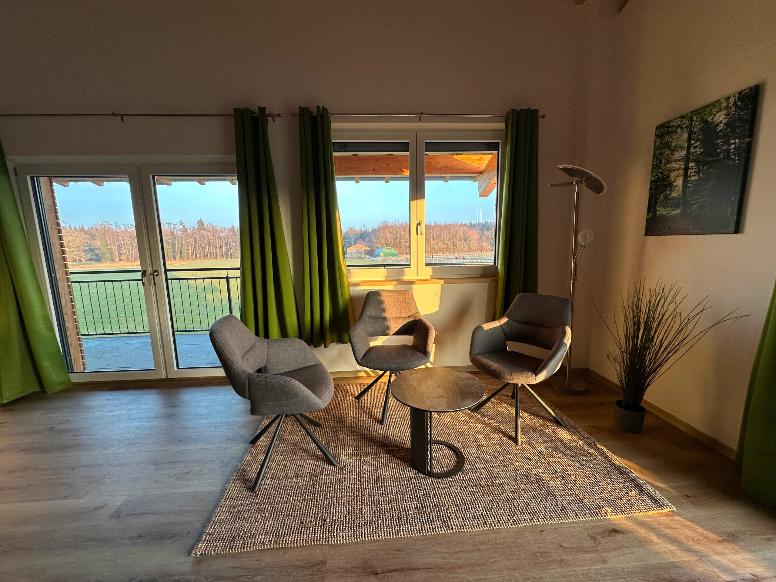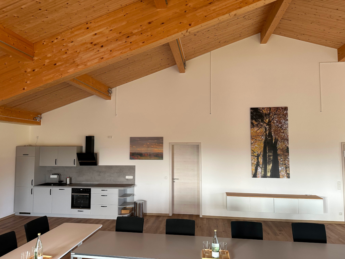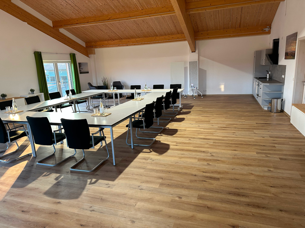 Die ruhige, naturnahe Umgebung sowie die großzügigen Räumlichkeiten schaffen ideale Bedingungen für fokussiertes Arbeiten und kreatives Denken. Unser Seminarraum ist flexibel nutzbar und eignet sich hervorragend für Seminare, Workshops oder Fortbildungen – alles in einer entspannten und professionellen Atmosphäre.